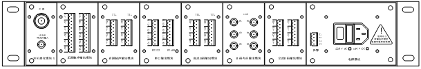 每臺機箱后面板配有1塊輸入模塊,1塊電源模塊和6塊輸出模塊;
